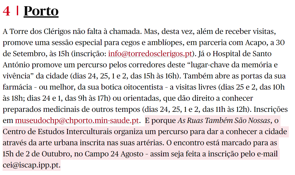 Público | Projeto Street Art CEI nas Jornadas Europeias do Património Clique aqui para ler a notícia completa no website do Público